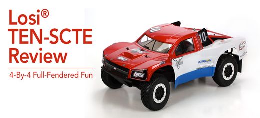 Since the arrival of the first 2WD short course truck, there has been a desire for 4WD versions. With 4WD you can generally go faster, hook up more power and can be easier to drive, but getting a 4WD short course truck that handles well, is fast and durable can be a challenge. The folks at Losi have stepped up to the plate with a new variation on their TEN-T platform called the TEN-SCTE. The rolling chassis combines elements of the TEN-T and 810 buggies with a new extended chassis, short course specific front and rear bumpers, and a new motor mount to make what has potential to be one of the best 4WD trucks out there. We were anxious to get some track time with this 4-wheeled wonder and the time has finally come. It's time to strap in and hold on because this is sure to be a wild ride.